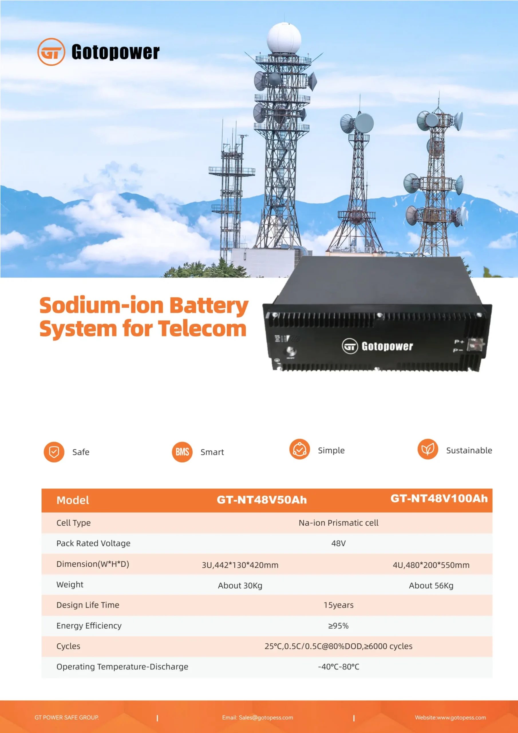 استكشف نظام بطاريات أيونات الصوديوم للاتصالات بجهد 48 فولت من Gotopower