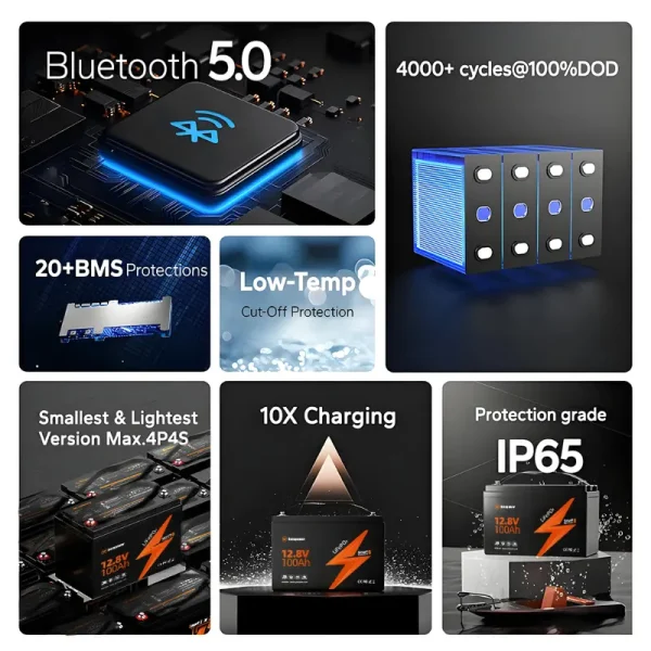 - High-Precision Bluetooth: Check the battery system’s real-time data and control discharge or shutdown from your phone.