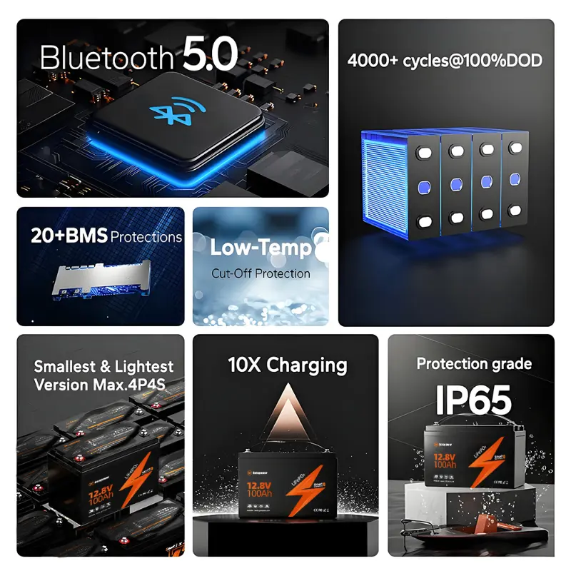 12.8V 100Ah LiFePO4 Lithium Battery Smart Bluetooth