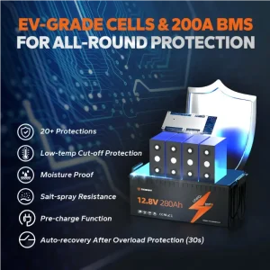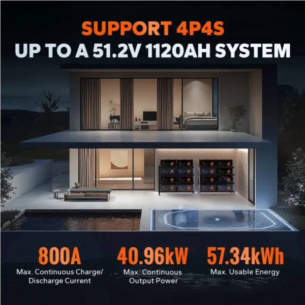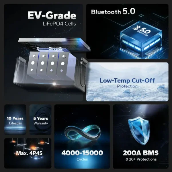 - Max. 200A continuous charge/discharge current, for high-power requirement.EV-grade LiFePO4 cells.