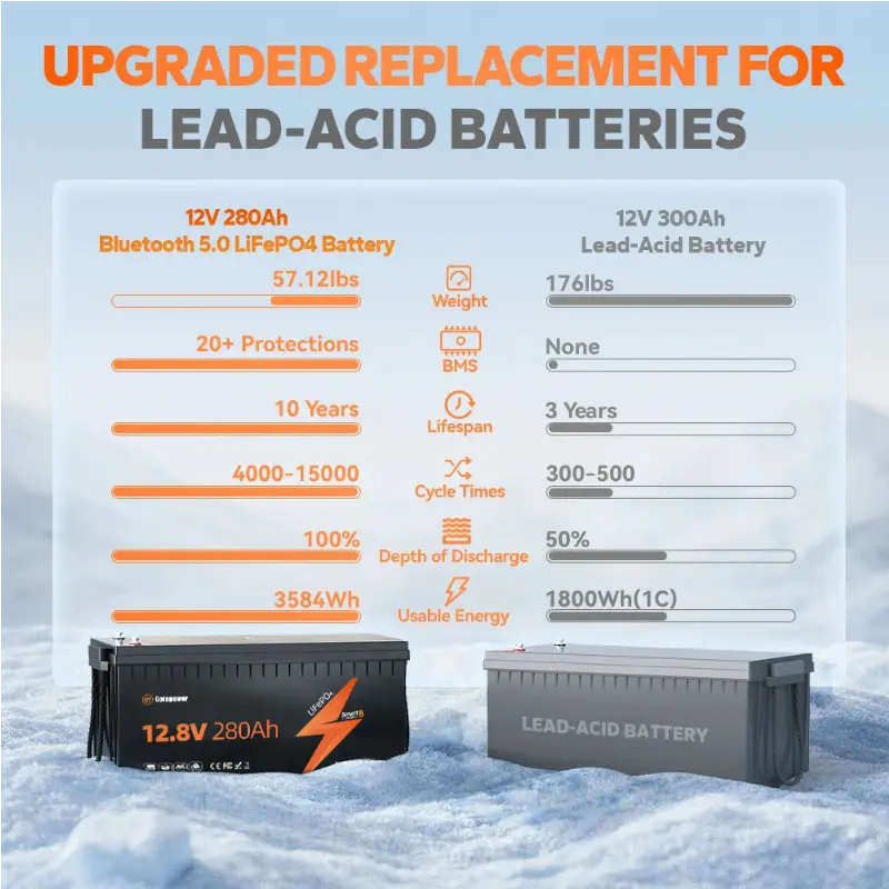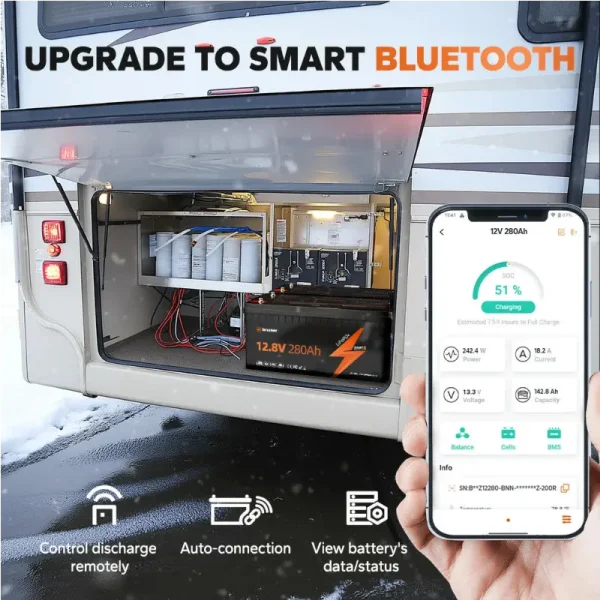 12V 280Ah Bluetooth Lithium Battery-3584Wh Power for RV Home Off-Grid