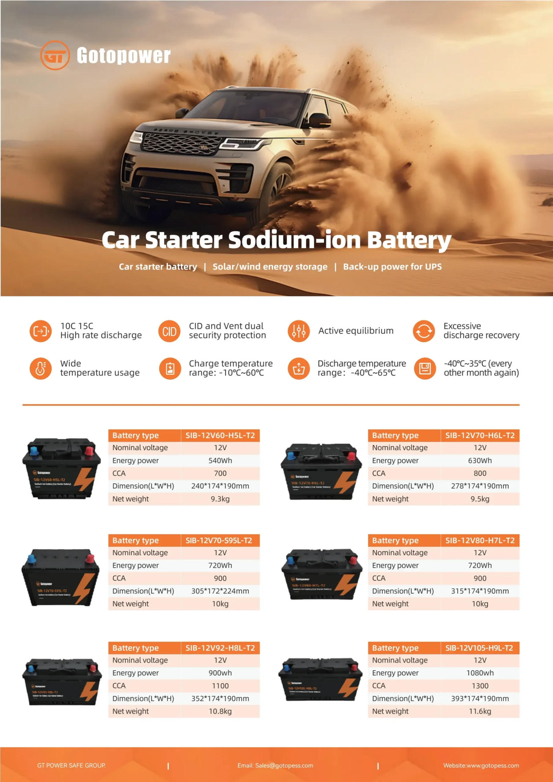 Explore Gotopower’s Car Starter Sodium-ion Battery System SIB-12V Series